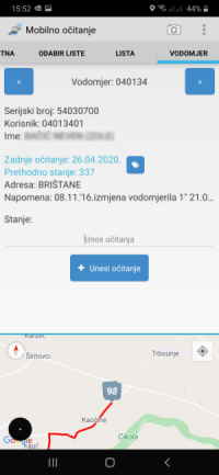 Očitavanje stanja vodomjerila mobilnom aplikacijom ta Android mobilne telefone. Slanje podataka u stvarnom vremenu i izvan mreže.